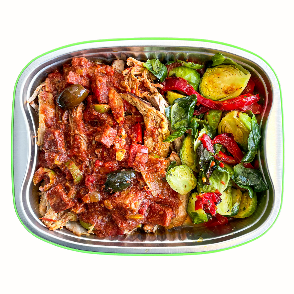 ngrédients: porc, olives, tomates, choux de bruxelles, poivrons, chorizo, chou-fleur, oignon, vin blanc, eau, olives vertes, olives noires, petits pois, ail, citron, artichauds, huile d’olive, sel, poivre et épices.