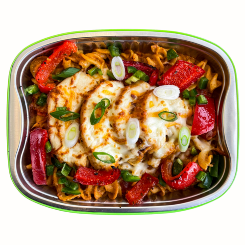 Ingrédients: poulet, huile d’olive, ail, crème sûre, yogourt grecque, fromage feta, tomates, olives kalamata, jus de citron, choux-de-bruxelles, oignons, sel, poivre et épices.